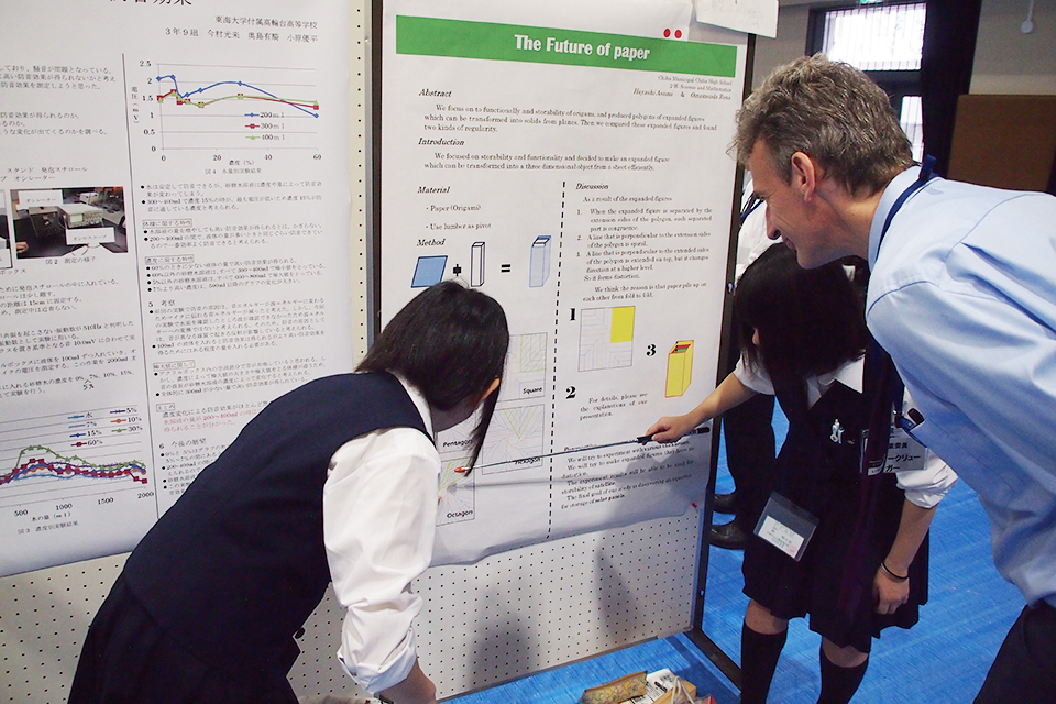 高校生を対象とした自然科学教育向上と充実を目的千葉大学構内にて毎年、高校生理科研究発表会を開催している。平成27年度の発表件数は約340件、発表高校生は約760名であった。高校生が研究成果をポスターで発表し、その中で優れた発表を表彰し奨励するとともに研究内容・方法等に対するアドバイスを行うことで、自然科学分野での研究能力やプレゼンテーション能力の育成・高度化を図っています。