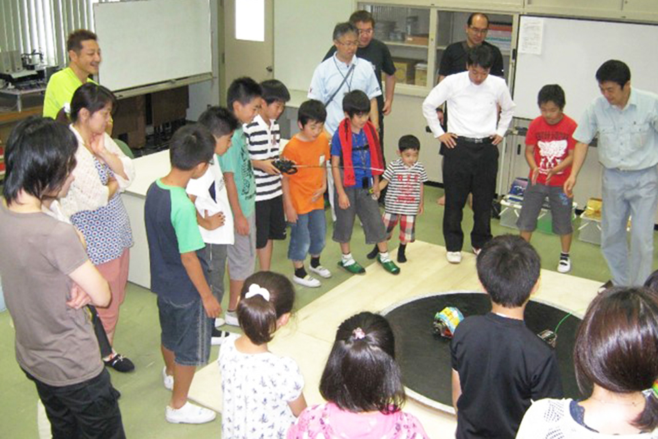 長生教育研究会技術家庭教育部会(長生郡市中学生ロボット製作活動支援)技術・家庭科の授業を通じ、物作りの楽しさと創造性豊かな人間形成を目的に平成17年から開催されているものです。生徒たちが与えられた課題に対し、共通の部品を基に様々な工夫をこらしたロボットを製作し、競技に参加することにより技術教育を図っています。